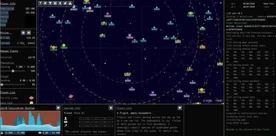 玩家需要在一个无限的、由程序生成的、密码学特定的宇宙中发现并征服星球。游戏名源于刘慈欣的科幻小说《三体2:黑暗森林》。