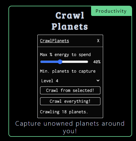 Voyage Time:非常实用,帮助计算两个星球之间传送能量的时间,在使用多个星球攻打敌方星球时特别有用。