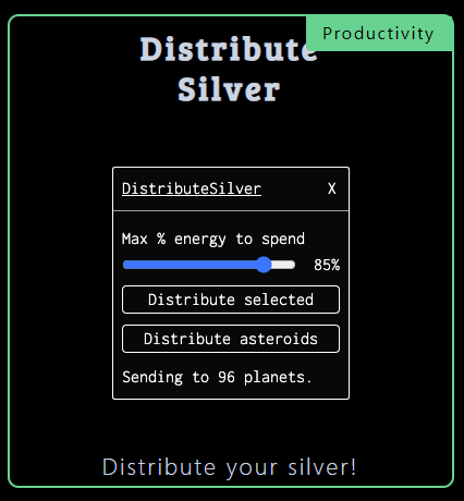 自动分发所选银矿至周围星球;如果版图过大了,那么不建议选择Disctribute asteroids按钮,分发所有,容易导致交易堵死失败。