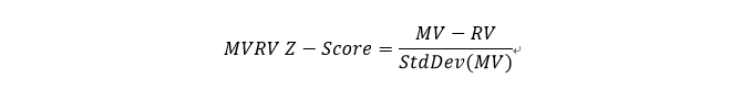 MVRV Z-Score由Awe&Wonder首次给出,是在MVRV指标基础上进一步优化得出的一个衍生指标。MVRV Z-Score是为了体现市值与已实现市值的偏离程度,实质为市值与已实现市值之间的标准偏差。计算公式如下: