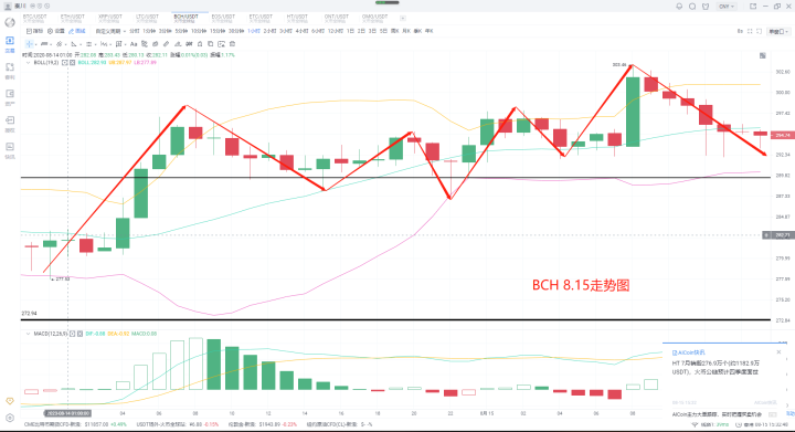 太子昨日思路选择继续持有280进场的多单,等待300关口。那么本日行情直接冲高了303.46,完美达到了计划止盈的位置,多单成功离场了,眼下倒也不用多安排什么,跟随大饼思路,选择两个方向,一是高位310不破的空单,二是回撤底部280附近的支撑多单。