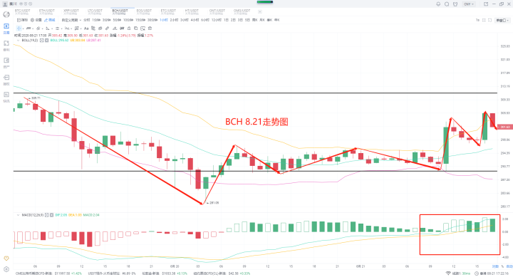 太子昨日思路上选择日内做好最坏打算,一旦290再度破位则保本离场即可。那么昨日并未出现破位的动作,也就一直持有,眼下行情反攻上了300,这里直接采取保守的思路止盈离场之后,定投在280 265 245三个位置多单跟进。