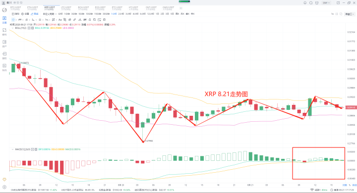 瑞波昨日点明不用着急,耐心持有关注能否企稳在做止盈打算即可。那么瑞波和以太一样,保持在0.29之上,这里也不用多说什么,一样的思路,一旦跌破止盈,装维0.275 0.26 0.24三个位置多单定投。