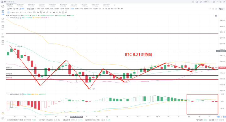 比特币昨日思路上说明选择开始定投思路,分别在11500 11300 和11100三个位置轻仓定投多单进场即可。这里行情倒是没有什么太多好说的,本身也没有出现较大的波动,始终维持小区间震荡,但这里久攻不上,短线之中回踩风险会加剧,所以保守起见,继续保持定投低位多单的思路即可。