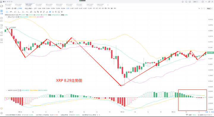 以太同样的昨日安排继定投的多单分别在365 345 325三个位置进场目标暂定在385-390一线即可。那么这里也是一样的表现,也就不用说什么了,和大饼一样思路,继续保持定投即可。XRP