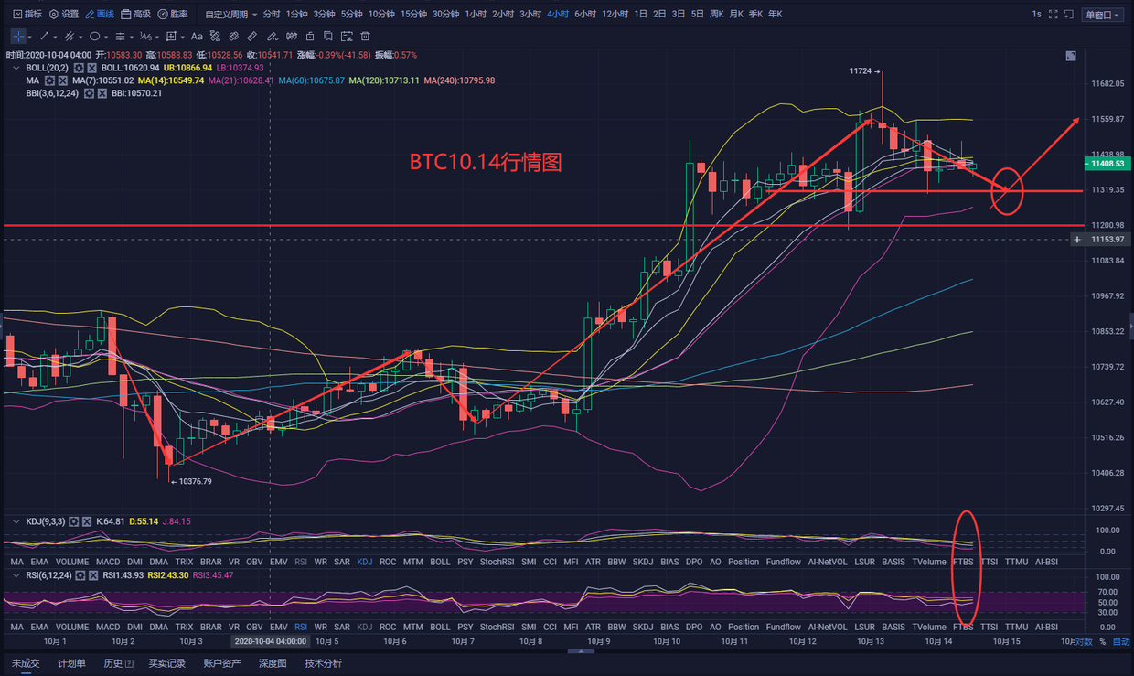 本日比特币持续走出震荡趋势,从盘面来看K线多次试探向下跌破,却始终未能如愿,足以说明多头量能的强势所在,那么当下思路仍继续保持多头方向为主力,空头为辅即可。本日思路上继续保持,照常以低位布局多头为主!则本日短线上比特币价格再次攀升至11450美刀附近则可继续追多,则跌破11300美刀下方方向则反转空!下方第一支撑看11000美金,上方第一压力位看11800美金。