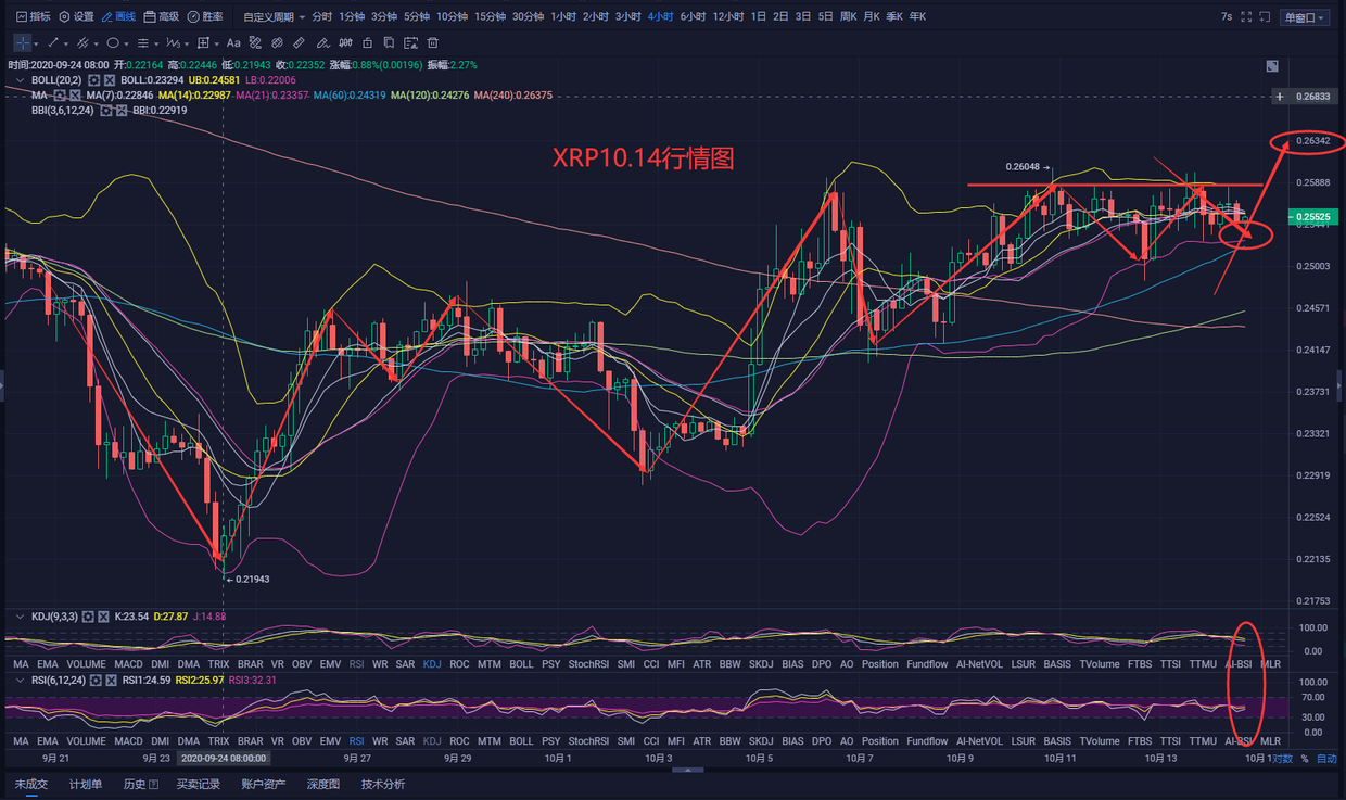 瑞波今日走势也如同死鱼一般,没有任何波动,跟昨日相比都是一样的波幅,那么本日思路上多头逐步定局在0.254,0.26美金附近,则空头定局在0.28之上,下方第一支撑暂看0.23美金,上方第一压力位暂看0.275美金。