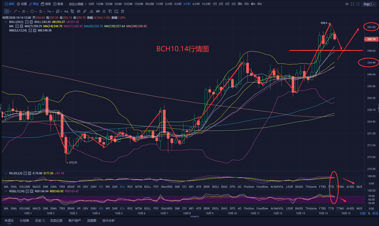 太子本日走势相对于其他主流币种来说,是比较给力的,持续一路向上攀升,最高冲击至258美金之上,多头方面也是再一次的吃到了利润,则本日思路继续维持多头即可,提前注意回调趋势就好。多头方面定局在255附近,二次追加点在260美金,空头反面则定局在270美金之上,下方支撑位暂且关注230美金,上方第一压力位关注280美金!