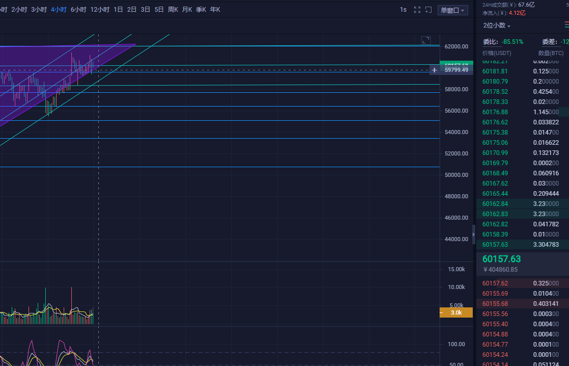 老方比特币晚盘总结:经过两日空单扫损之后,btc沿着上行通道持续走触底反弹的节奏,由图可注意到三角区间的支撑始终没破结合上行通道中轨走出这两日的低多走势,斐波那契70.6%在这段时间中(59600)起到坚固底部不破的作用,踩着支撑上涨成了主要节奏。建议晚间延续这两日思路做单,回调至(59700)参考多头,目标(61000)#比特币#有不懂的朋友可以关注作者私