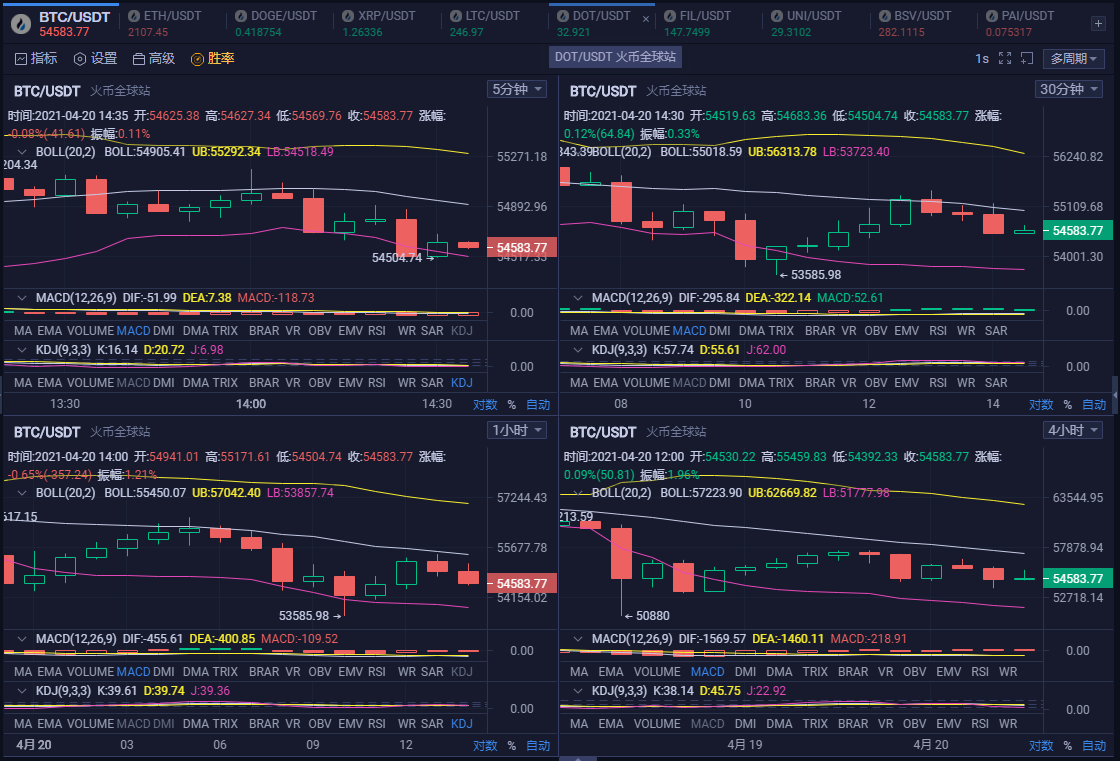 总结:币价日线图仍处于回调区间没有站稳,但是30分钟线来看这一轮短周期反弹有结束迹象,接下来需要重点关注30分钟线下轨支撑。