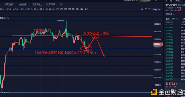 建议52500-53000区间内考虑,在日内到达54400的时候便是卖多买空的时机,如果触及高点形成压制导致出货,那么随之价格跌至53000下方也不难,建议止损都带300-500个点,根据自己的资金量和仓位配比来定。有问题私聊咨询