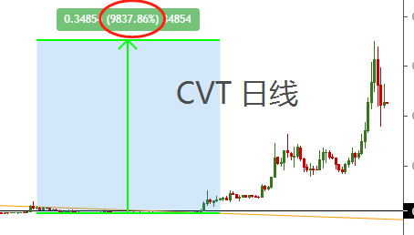 CVT,这个是2019就推荐的币,当时就吃13倍,这是二次推荐,绝对的庄币。不要以现在的眼光来看当时的情形,当时能CVT破发90%,媒体搜了个遍都没几篇关于他的文章。自第一次买入到4月最高点,利润可达98倍之多。 像这三个在牛市来临之前就发现的币种怎么才能拿到最后,我觉得只有轻仓和及时抽出本金,才有可能拿到最后。