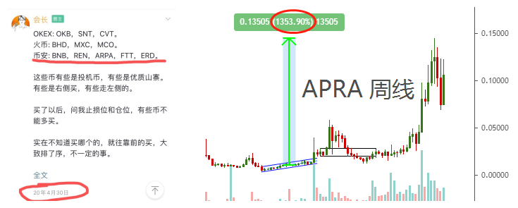 这个币一共做了3波,第一次是在2月初,这是第二次,因为项目方重建中国社区,又恰逢DEFI开始火热起来,技术面也配合得很好,所以当时是非常看好的,所以经常提这个币,这个币很多伙伴吃到肉了,最高17.55倍。