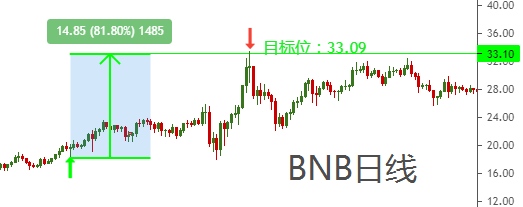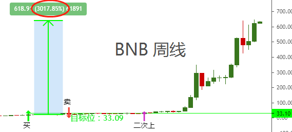 第二波12月17日告诉大家开始布局平台币,首推BNB,当时BNB才30u,在30附近盘整一个月后,就启动了,最高645,总共历时才4个月。