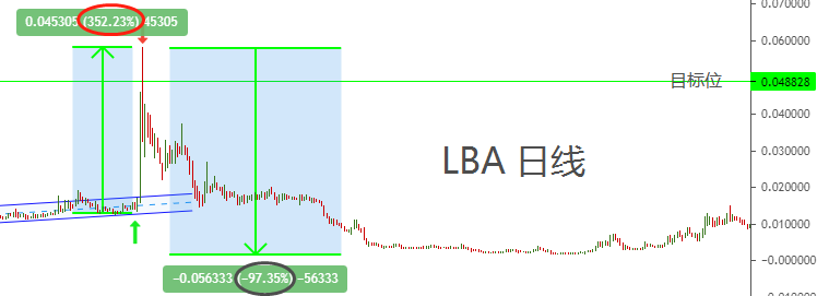 这是个“伤害很大,侮辱性也很强”的币种,前后24小时完成狙击,打到目标位后,连跌7个月,回调了97%,到现在还没缓过来,这是目标位的魅力,目标位是提前告知的。