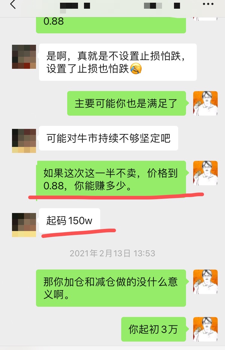 还有最后一个目标区间没完成0.88~1.22,以小W中途不减仓也不加仓的情况来看,到0.88起码能赚150w,如果到1.22能赚213.7w。