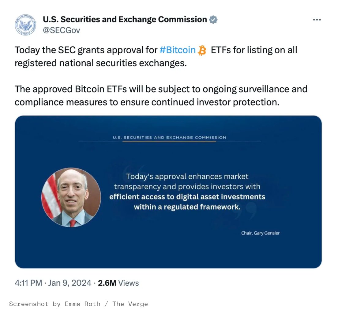 而且,SEC 账号被盗宣布通过 BTC 现货 ETF 假消息这件事,对于 Bitcoin ETF 本身也有一些负面影响。