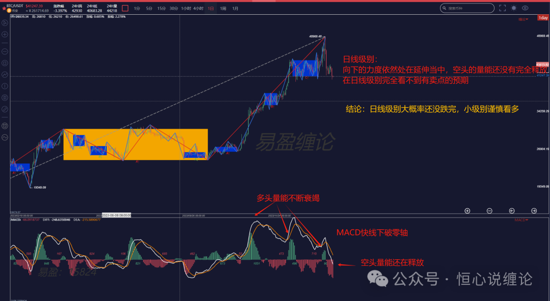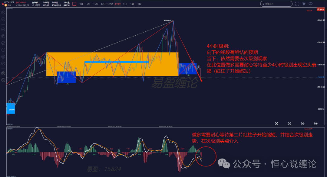 The 4-hour downward segment has broken the new low, indicating that the sub-timeframe has entered a divergence phase. However, entering a divergence phase does not mean an immediate reversal; patience is needed to wait for the end of the sub-timeframe trend.