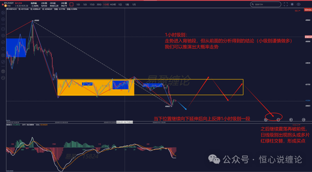 Although the 1-hour timeframe has clearly entered a divergence phase, considering the larger timeframe trend, it is still possible for the current situation to continue to oscillate and then break through downwards. At this point, the daily timeframe may have already shown several alternating red and green bars, thus forming a relatively secure buying point.