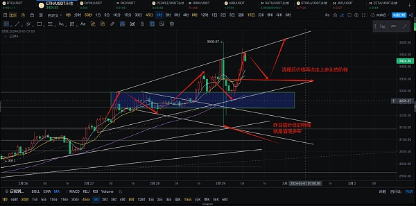 以太坊昨天凌晨插了一根天地针,从3500暴跌到3150这一波操作目的很明确就是为了把多头清洗出去再进行拉盘,因为这一路多头都太顺了,可以说是无脑做多无脑赚。