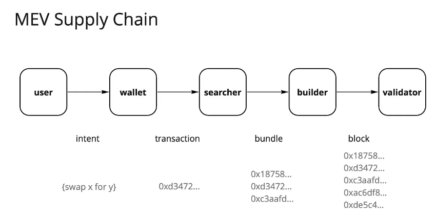 自从以太坊完成合并并引入 Flashbots 和 MEV-Boost 后,其 MEV(最大可提取价值)格局发生了显著变化。曾经由搜索者主导的“黑暗森林”已经演变为一个趋于商品化的订单流市场。在这个市场中,当前的 MEV 供应链主要由验证者主导,他们通过对供应链中每个参与者的出价形式,接收了约 90% 的生成 MEV。