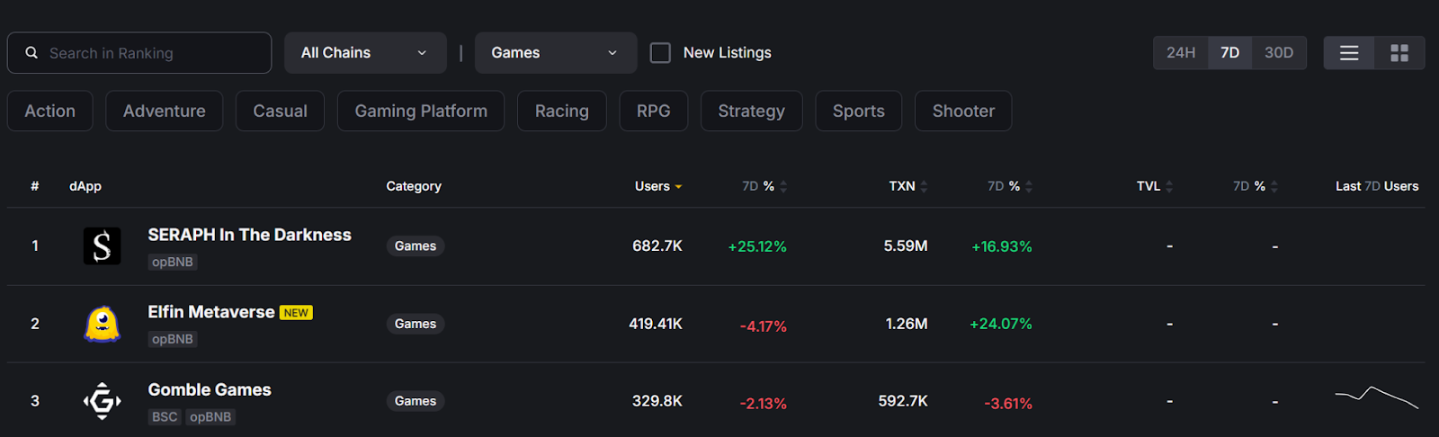 在 7 月至 8 月期间,Seraph 举办了 Rush 系列活动,活动中产生了超过 70 万名 Feather NFT 持有者。作为未来 Seraph 代币的认领凭证,这些 NFT 引发了大量链上交易活动,活动期间的链上交易次数超过了 1,700 万次。这一成功使 Seraph 在该期间登顶 BNB Chain 链游排行榜。此次活动的成功也为 Seraph 与 BNB Chain 的持续合作奠定了基础,未来将通过更多举措吸引更多用户。