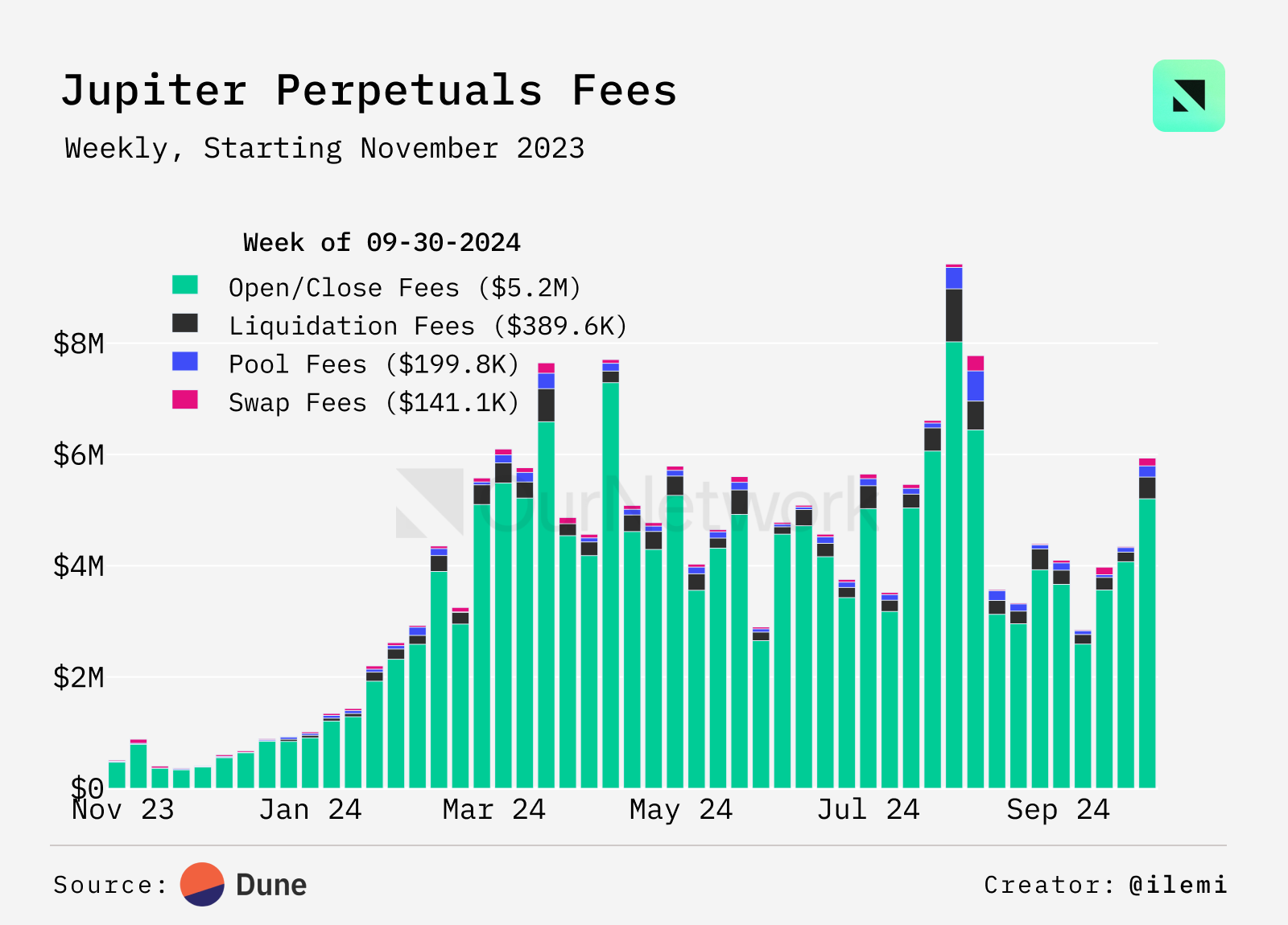 依托大量普通交易者池、深厚的流动性和高交易量,Jupiter Perps 每周为 JLP 持有者带来 200 万至 800 万美元的收益,进一步促进了平台的发展。