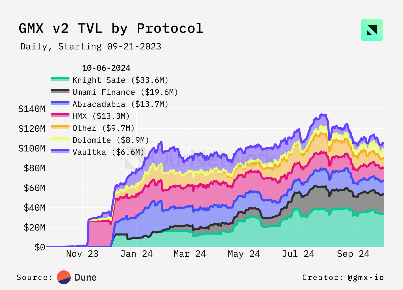 GMX 合作协议的 TVL 激增,占到 GMX V2 总锁仓价值的 41%
