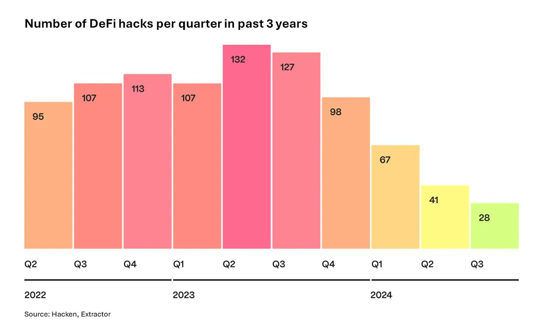 The security of DeFi has also seen significant improvements, with comprehensive smart contract audits before deployment becoming standard. Platforms like ImmuneFi encourage ethical hackers to identify vulnerabilities and security issues through bug bounty programs, ensuring these problems are addressed before they can be exploited. These advancements in wallet infrastructure and security have made DeFi safer and more efficient for all users. The number of DeFi hacking incidents has significantly decreased over the past year, a direct result of these improvements.