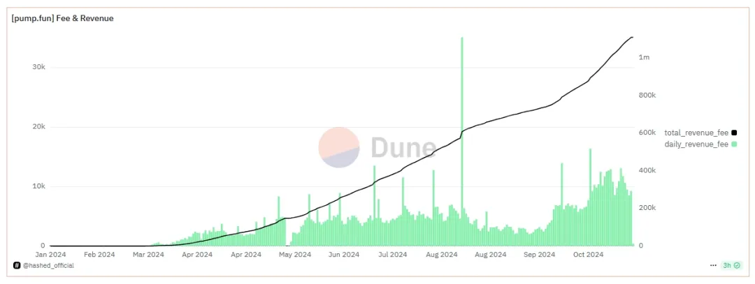 Pump.fun's total revenue and daily average income are continuously growing.
