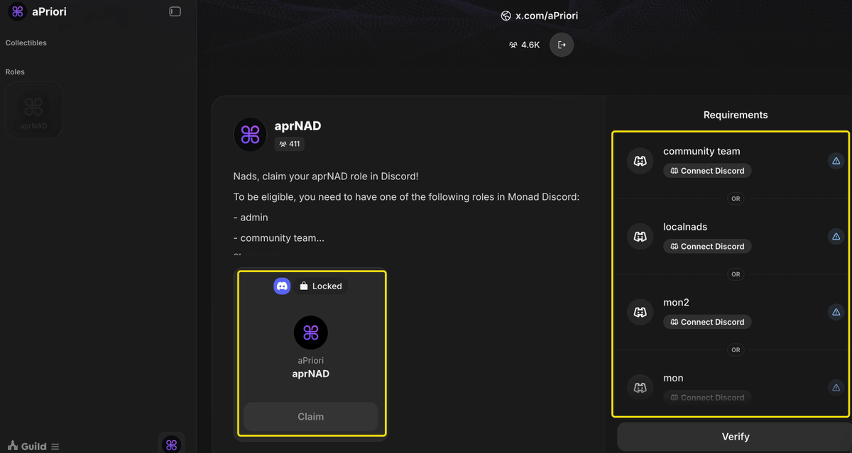 2️⃣连接您的Discord账户,并验证Monad Discord中的合格角色。