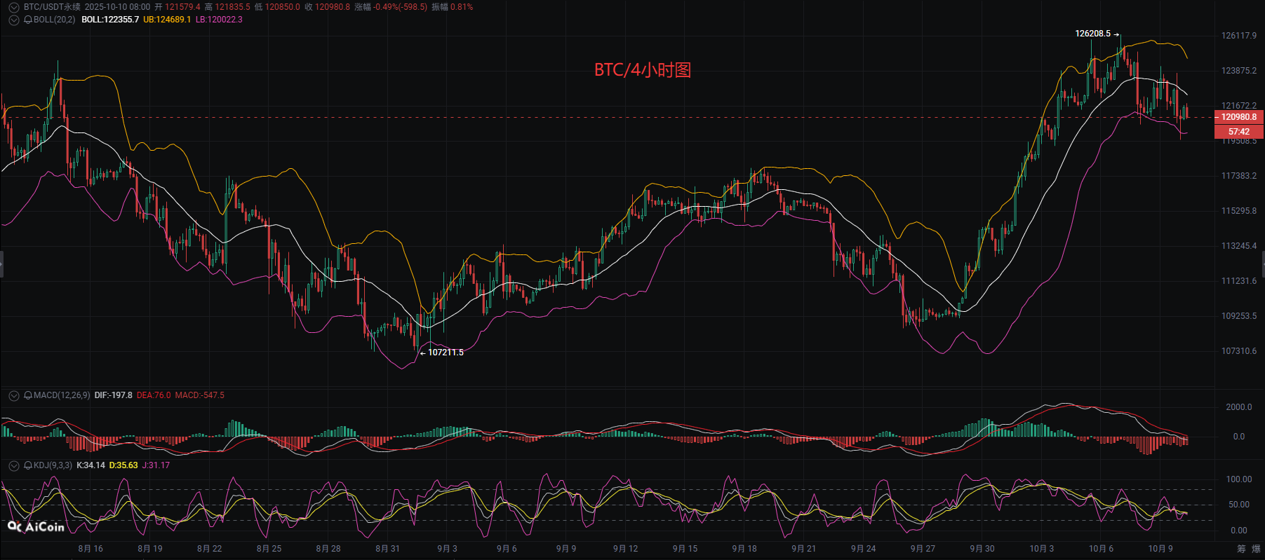 短周期小时图上看,随着这波破位跳水,目前反弹力度偏弱,顺势偏向下行,我们思路顺势做空即可。反弹关注122000压制区域,短线下方支撑关注12万一线其次关注119000,