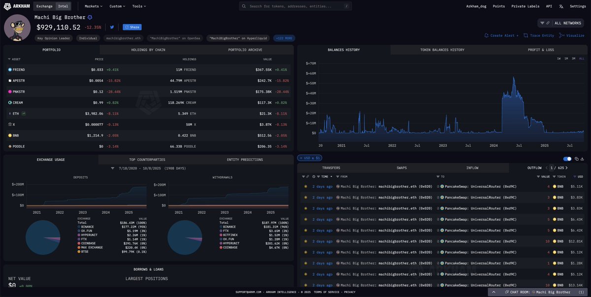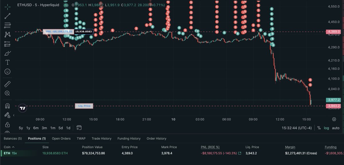 Machi Big Brother’s lifetime PnL on Hyperliquid went from +$44M to -$8M. Now, he is down to his last $2M of margin. Will he make it out?