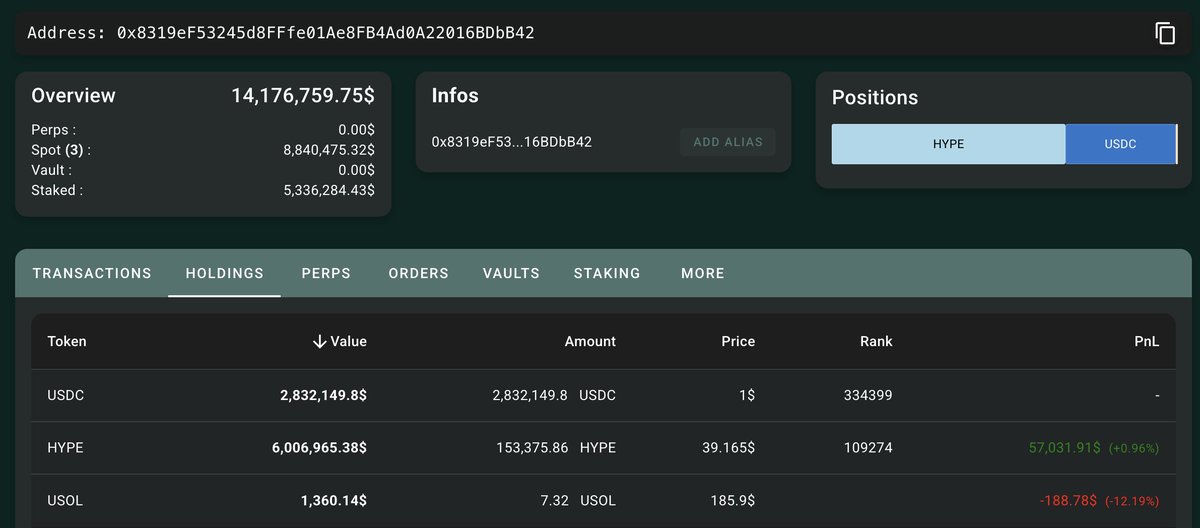 https://hypurrscan.io/address/0x8319eF53245d8FFfe01Ae8FB4Ad0A22016BDbB42