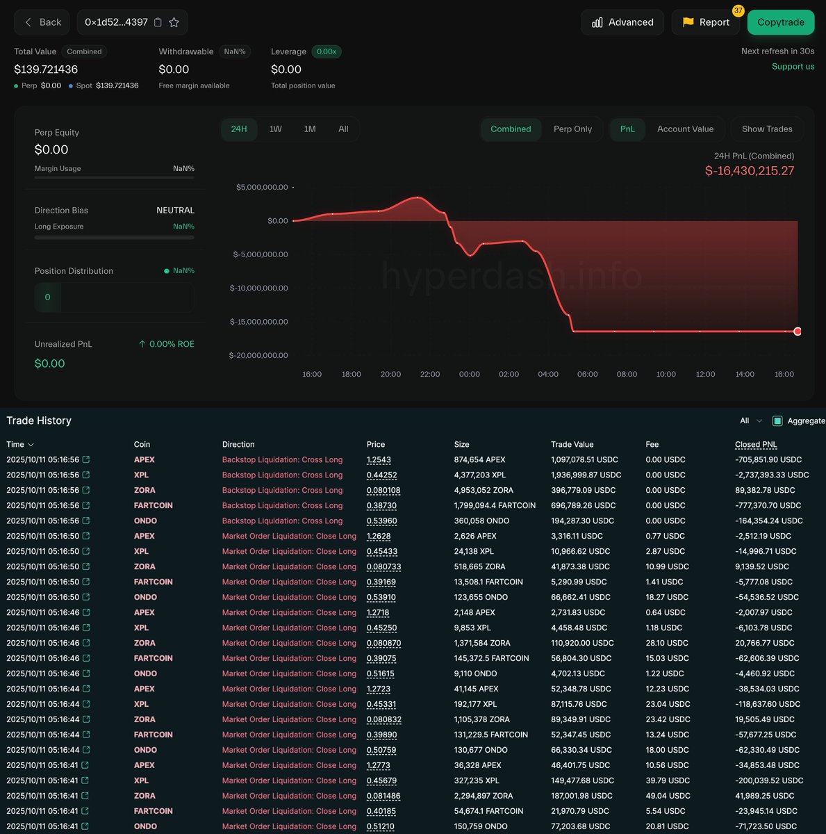 • 0x1d52 lost $16.43M, only $140 left