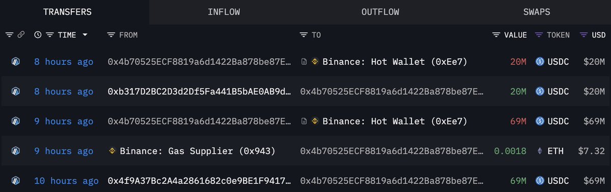 Right after, he deposited 89M $USDC to #Binance — possibly shorting $BTC again.