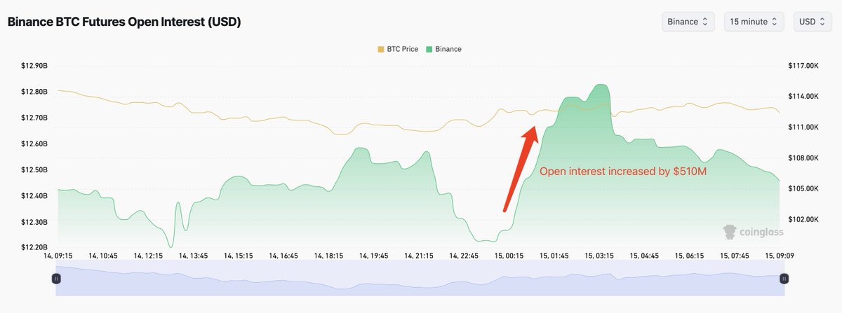 And BTC open interest on Binance jumped by $510M shortly after his deposit.