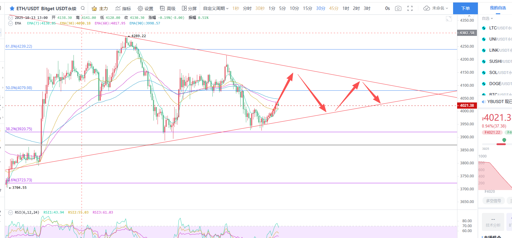 昨日的以太可以说是测试了目前震荡区间的高低两点,上方最高给到4200上方,下方给到3950下方。昨日我们的操作选择是下方接多,所选择的点位是4050。最终是打到了我们的止损位。不过损了就损了,在赚回来就好了 。有想要一起操作的可以联系本人:Love_2025fa(VX)。
