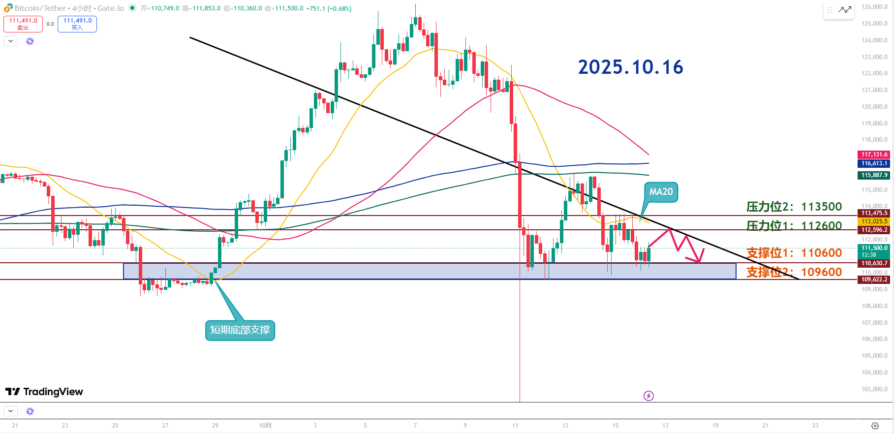 从4小时级别来看,大饼依然是明显的下行趋势。短线支撑在109.6K一带,只要这位置能守住还会有点反弹,但反弹不等于反转。