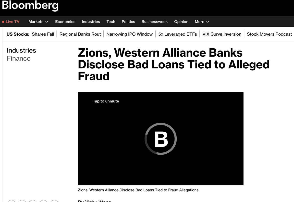 美国两家区域银行——Zions Bank和Western Alliance (WAL)。双双披露信贷诈骗案: