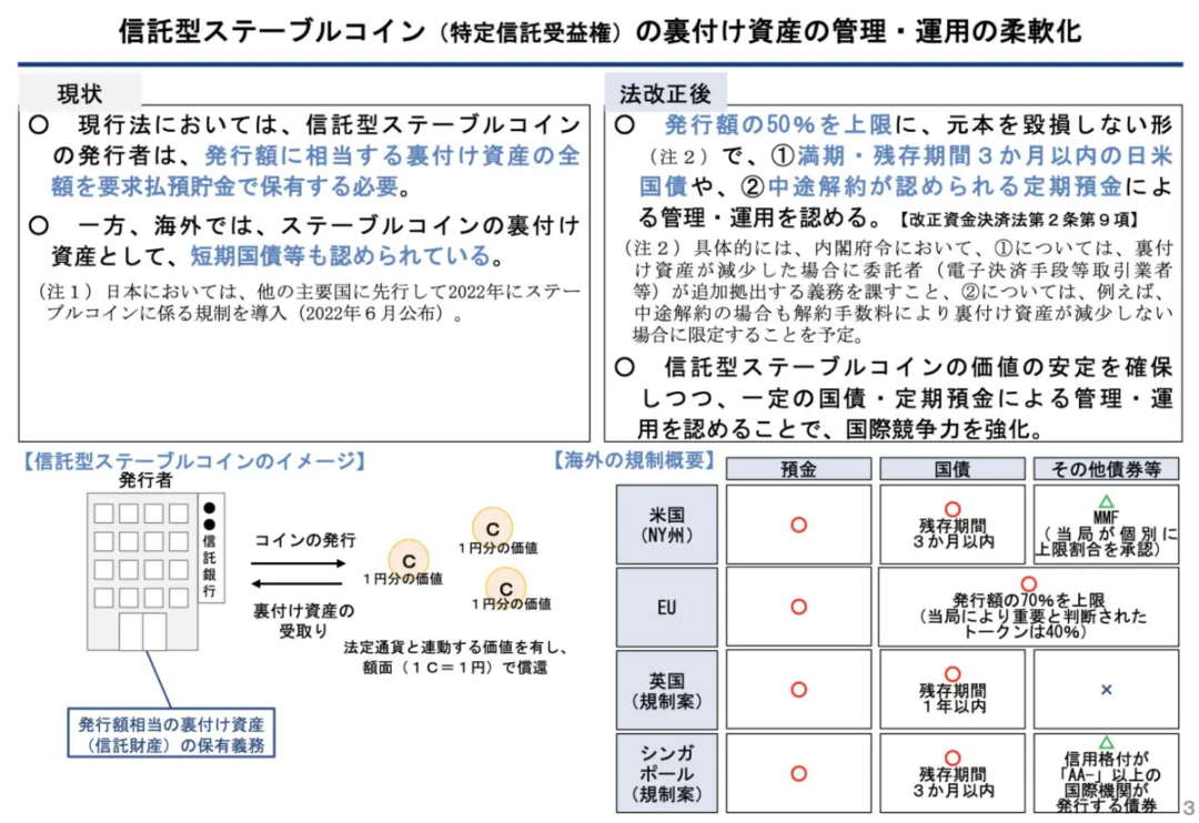 不过在2025年春天,事情发生了转折,日本释放了诸多信号。首先是 FSA 联合德勤,在2025年3月3日发布了有关于稳定币健康发展分析的研究,显示监管正在做技术与制度评估;之后在2025年3月7日FSA 向国会提交了部分修订《Payment Services Act》的案子,并在2025年春季持续发布相关说明/FAQ,表明监管层在推动制度完善;随后的几个月里,路透社等媒体报道指出,FSA正在讨论把加密资产地位、监管边界进一步明确。