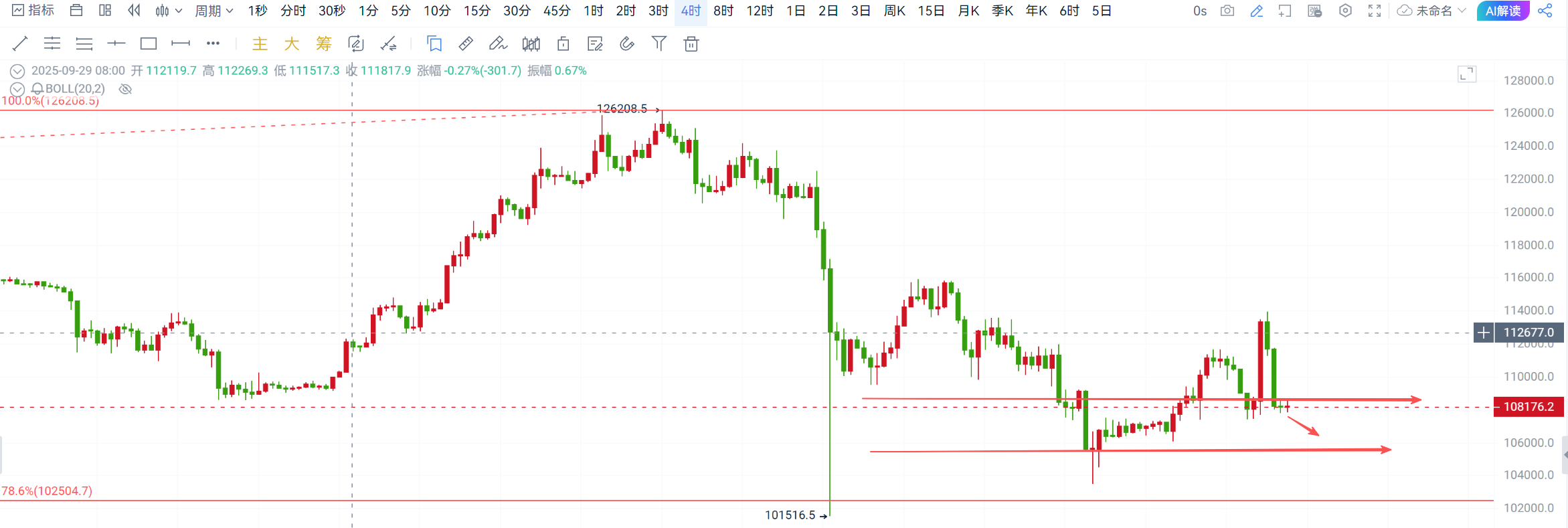 目前行情从日线级别看,大饼昨日冲高至114000附近后迅速回落,并且依旧收线在110500压力位下方,证明此处上方抛压依旧比较大,此压力位可视为短期的多空趋势分水岭,下方支撑依旧在108000-106000一线不变,以太同样也是上行虚破4000-4100一线后画门回来,收线在4000下方,此处上方也是抛压较大的,支撑3800-3750一线不变;