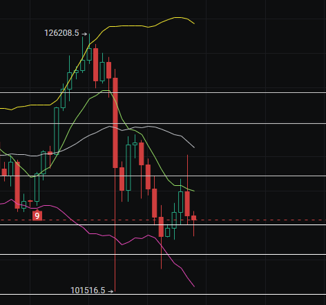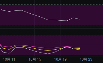 Mfi和rsi上看,mfi和rsi都在弱势区域,且都是向下的趋势,所以这里也是看空的。