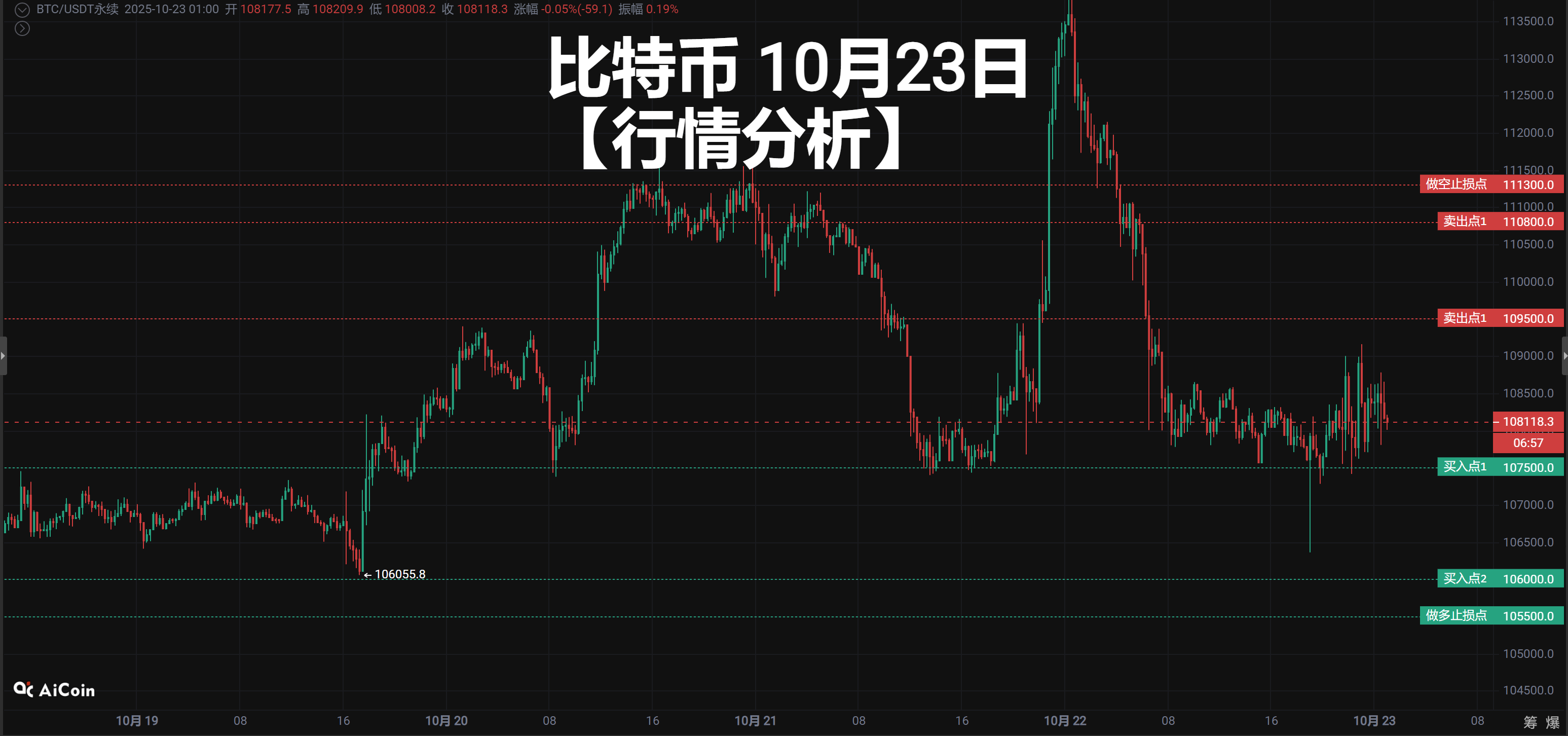 • 日线级别显示近期价格在108000至113000区间内震荡,10月21日出现长上影线,表明高位抛压较强。