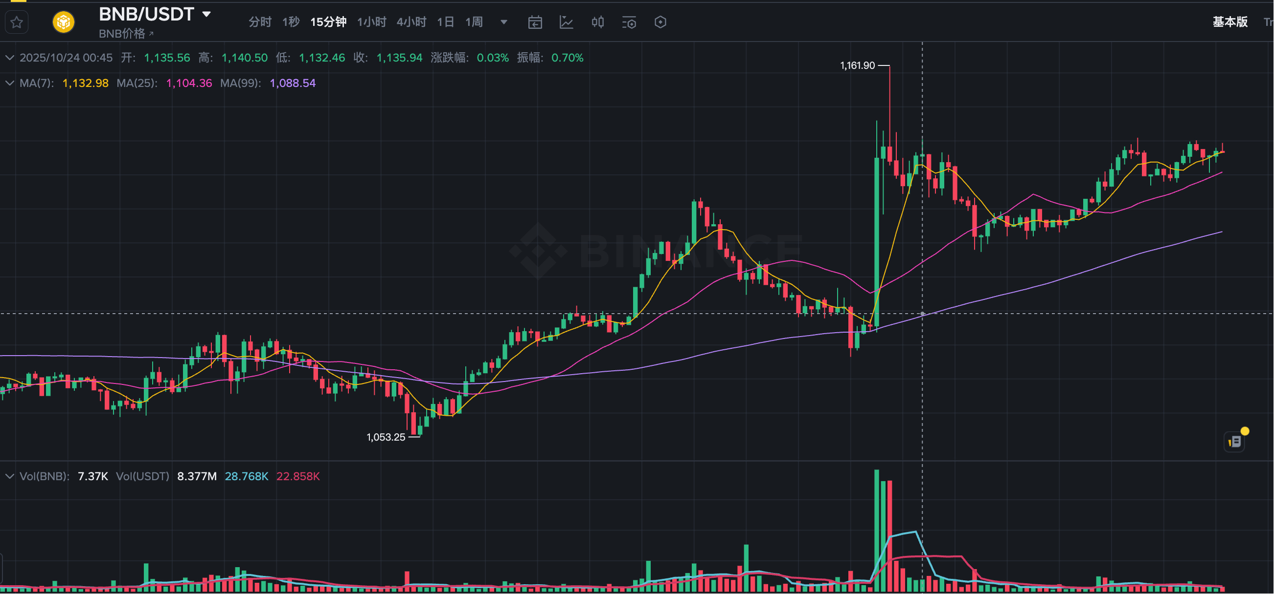 这一消息公布后,市场反应迅速且强烈。币安平台币 BNB 价格应声大涨,一度触及 1161.9 美元,短时涨幅接近 8%。不仅如此,比特币价格也随之突破 11.3 万美元关口。