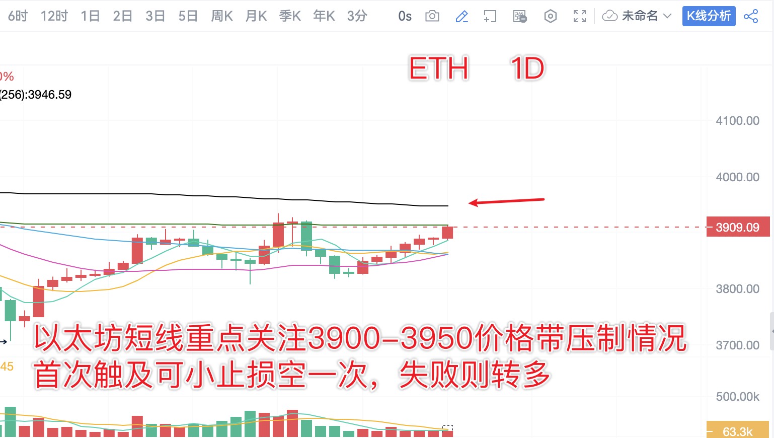 ETH :3930-50小止损空,目标5-80点;下方3860/3800多看8-150点反弹