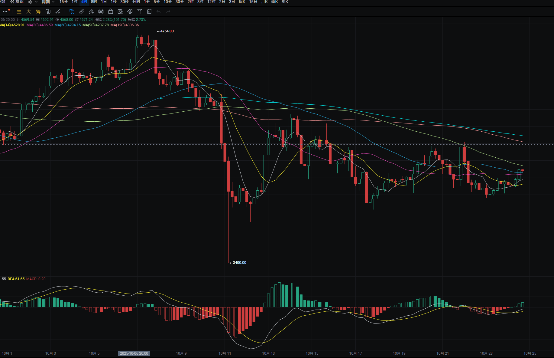 以太日线昨日从最低3795附近上涨至最高3935附近 收线在3855附近 下方支撑位于3870附近 跌破则可看至3800附近 回踩可在附近进行接多 上方压力位于3980附近突破则可看至4070附近 反弹至附近可进行接空 MACDk从头缩量 四小时下方支撑位于MA7均线附近 跌破则可看至3825附近 回踩可在附近进行接多 上方压力位于3975附近 突破则可看至4020附近 反弹至附近可进行接空 MACDk从头增量