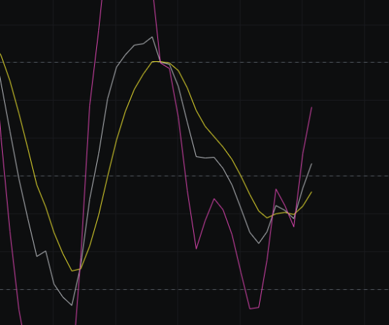 Boll上看,上轨继续向下,但随着这两天的阳线,下轨由向下变为走平了,也就是前面形成的下跌通道被破坏了。既然不走下跌通道,那就会过渡到宽幅,然后上轨继续下压,下轨开始上抬,直到达到一个区间,然后再选择方向。这个周期起码得几天才能完成,所以选择方向要看下个周了。
