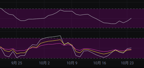 Mfi和rsi上看,两个指标回到了中性区间,同时都是向上走,形态上利于多军,至于到达中性区间后是继续向上还是拐头向下,还需要下个周才能看出来。