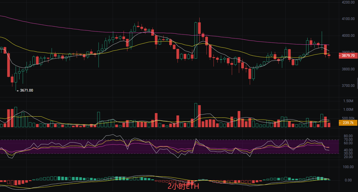 Before publication, the current price of Ethereum is 3,888. Li Ying observes that Ethereum is currently fluctuating between a strong support level of 3,671 and a strong resistance level of 4,103. The technical indicators show that despite the recent appearance of a bullish engulfing pattern, suggesting a potential reversal signal, short-term momentum is weakening, and the market lacks an upward or downward trend. The K-line is oscillating around 3,880, forming a slight fluctuation consolidation pattern. The technical indicator MACD shows weakening bullish strength, and the EMA short-term trend is weakening; EMA120 remains the main resistance level. The outflow of funds in the market has decreased, and the market lacks liquidity. Li Ying believes that it will be difficult for the main force to stretch in the short term, so high-position shorts are considered effective and can be held.